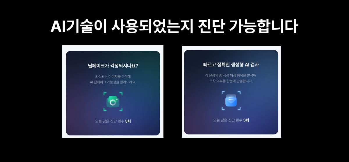 딥페이크안심보호는 나와 유사한 딥페이크 콘텐츠가 웹 상에서 유출되었는 AI로 분석하여 매일 안내해 주는 기능을 제공합니다. 이외 딥페이크 진단, AI 작성 진단 등 AI 기술 활용에 대한 진단을 도와주는 기능과 딥페이크 피해자 사실 확인 시 피해보상 보험 혜택도 제공하는 AI 사칭 범죄 통합 보호 서비스입니다. 아래에서 다양한 딥페이크안심보호 기능에 대해 자세히 확인해 보세요.