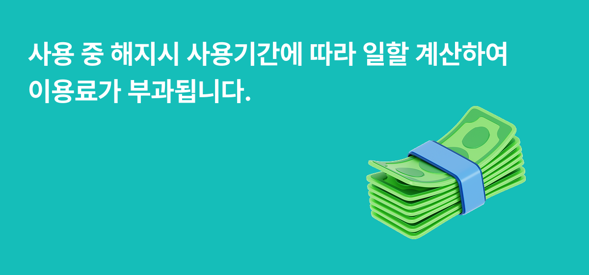 - 해지 시 사용 기간에 따라 일할 계산하여 이용료 부과
