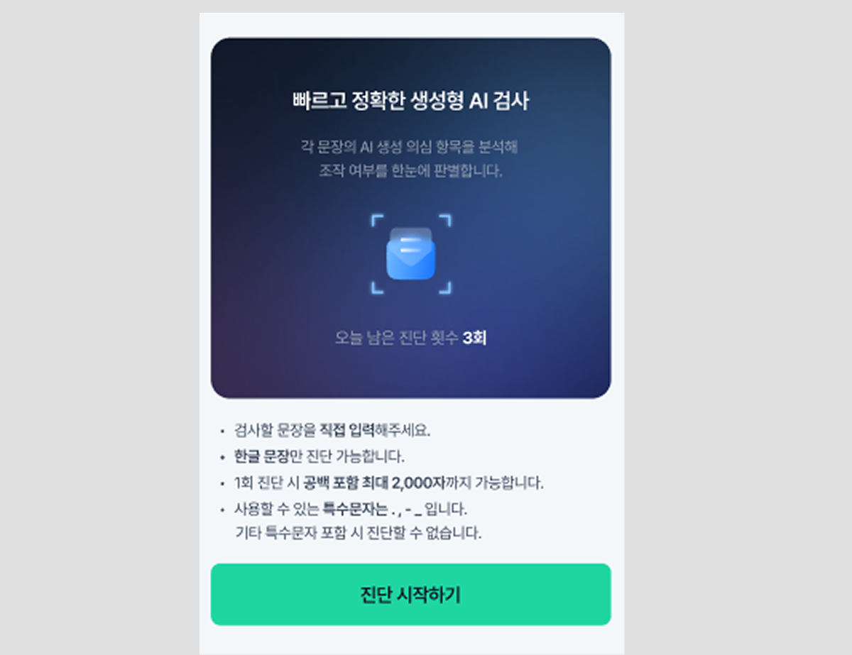 - 1회 진단 시 공백 포함 최대 2,000자 입력 가능.